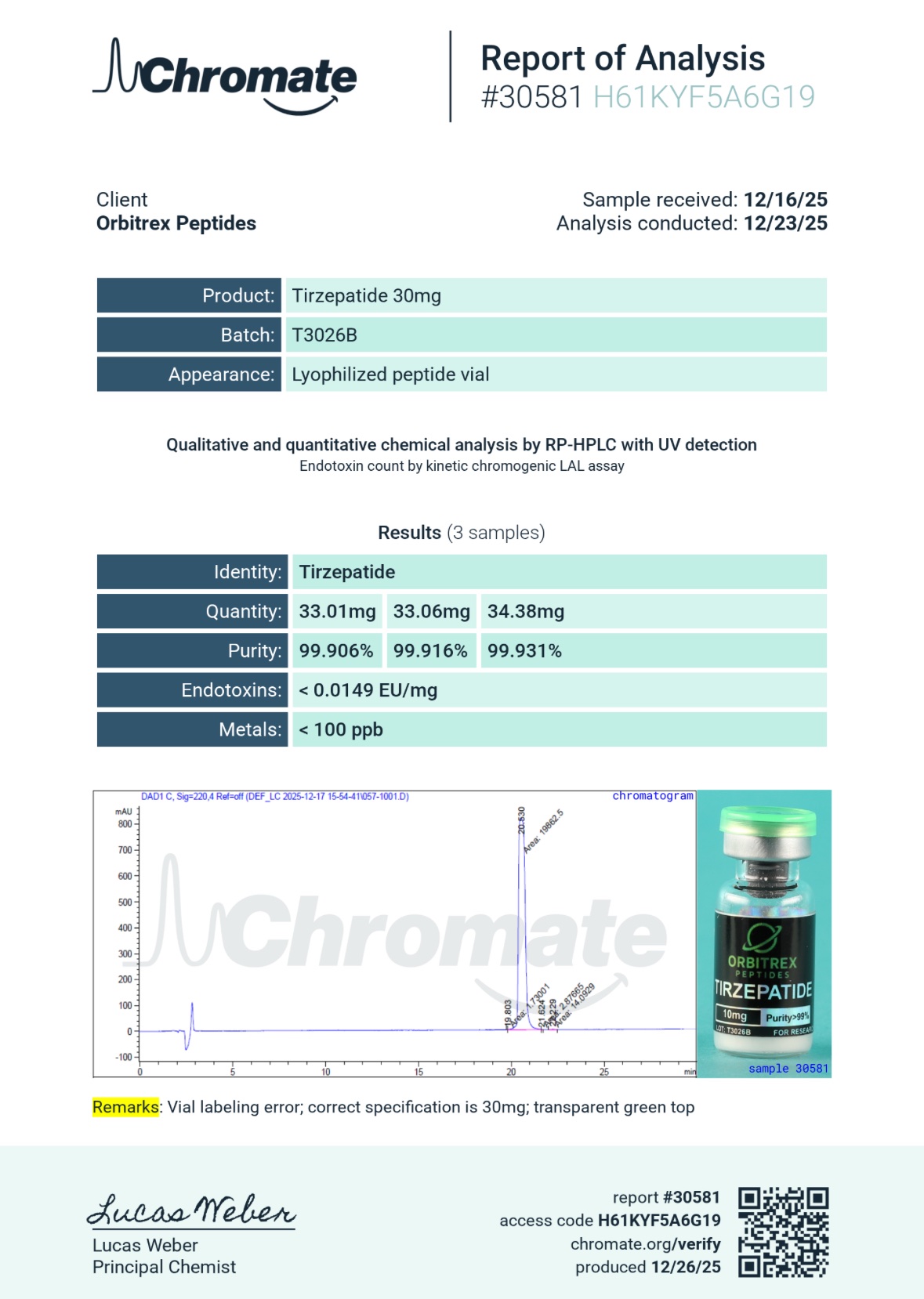 Whether you are a researcher working independently or part of a larger institution, 2G-TZ 30mg offers the purity, documentation, and logistical support you need. With Orbitrex Peptides, you can rest assured that every product is handled with the utmost care, tested with uncompromising standards, and delivered with efficiency in mind.