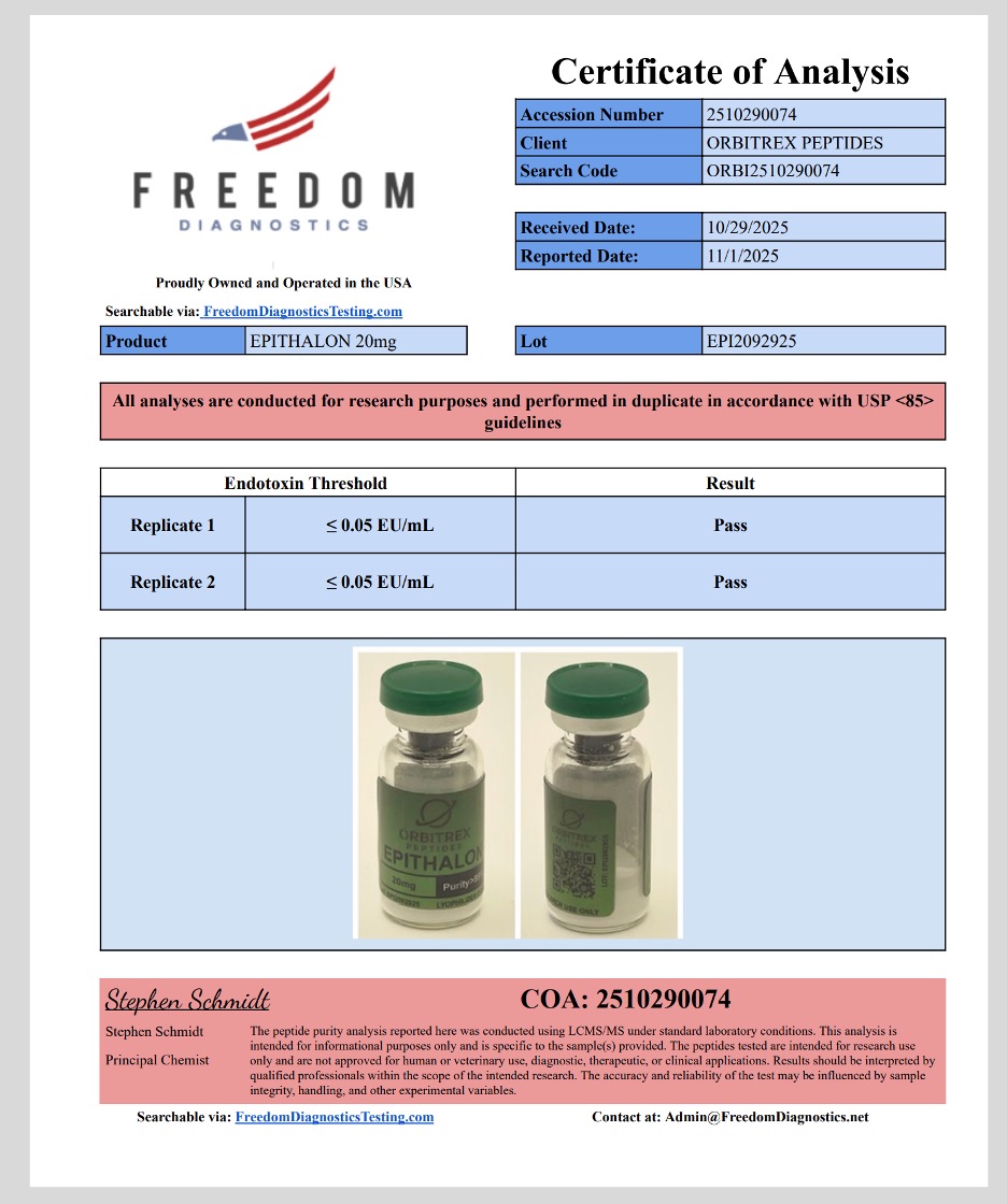By choosing Epithalon from Orbitrex Peptides, you are selecting a product that is more than just a peptide – it’s a reflection of our commitment to quality, transparency, and research advancement.