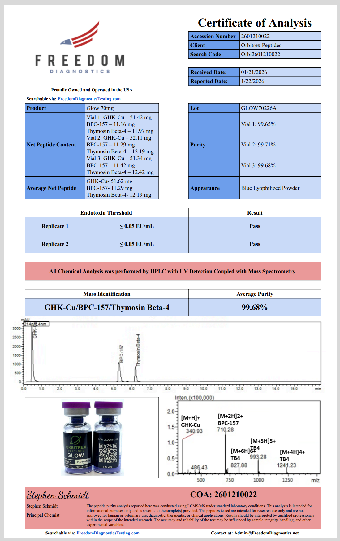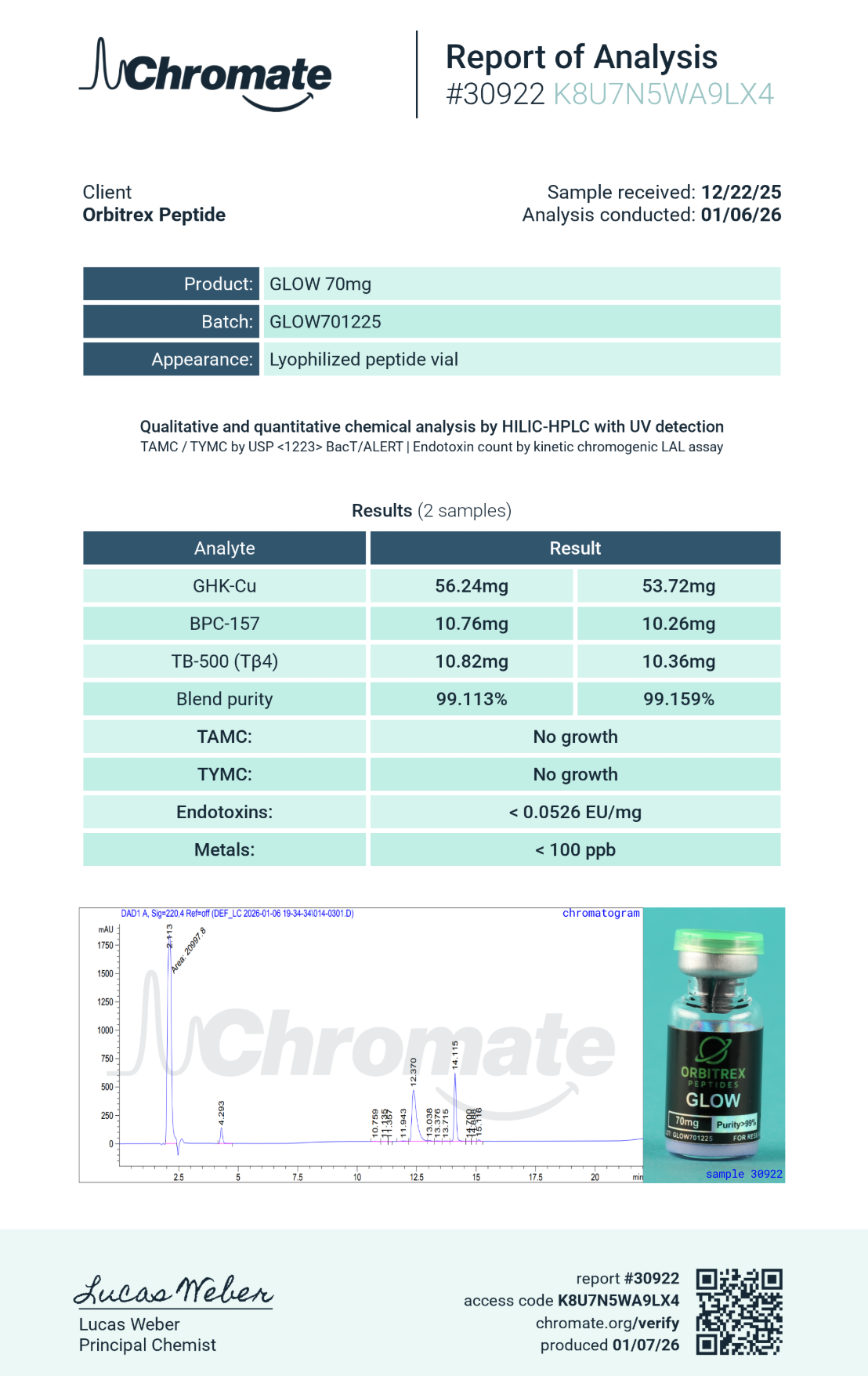 Glow Blend undergoes rigorous quality control procedures and independent 3rd-party verification, guaranteeing 99%+ purity for every vial. This commitment to transparency ensures that researchers can move forward with confidence, knowing they are working with a peptide blend that has been tested, validated, and proven to meet stringent specifications.